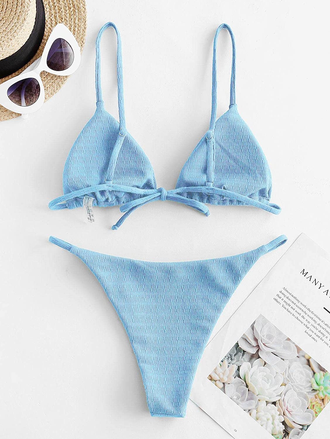 ZAFUL Textured Tie Low Rise Bikini Swimwear