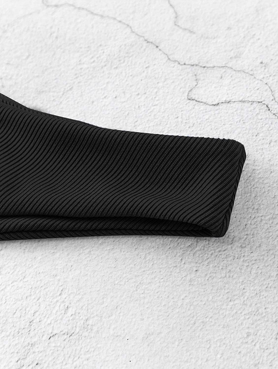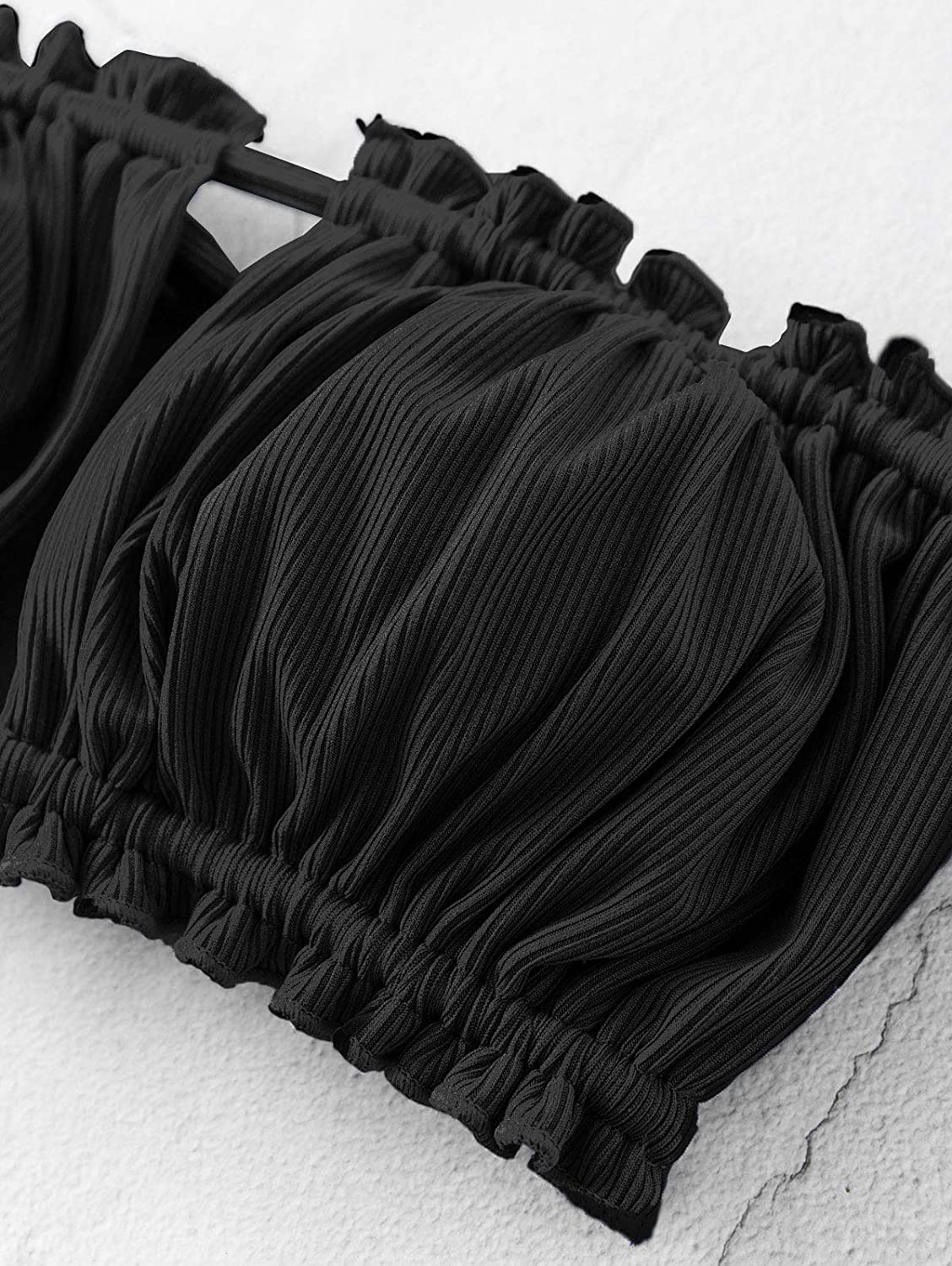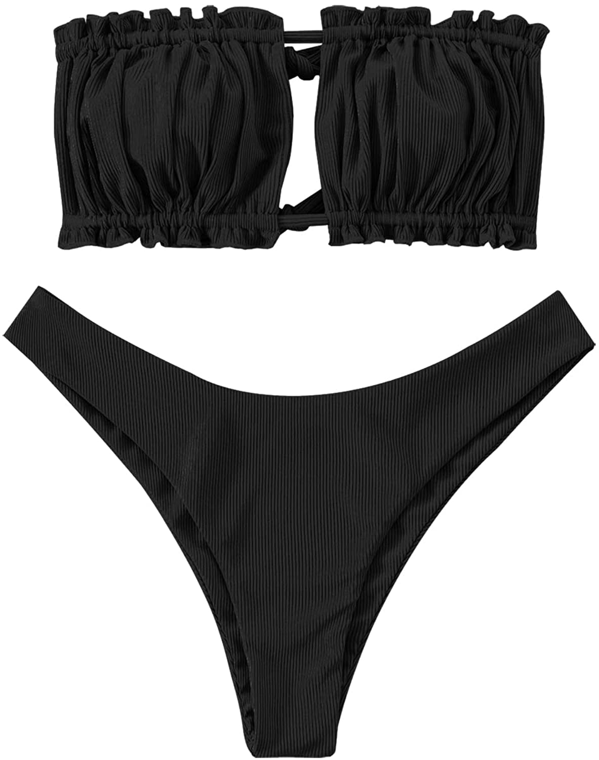 ZAFUL Women’s Strapless Bikini Set Ruffle Ruched Ribbed Frilled Tie Back Cutout High Cut Bandeau Swimsuit