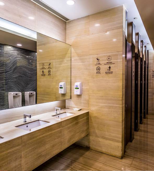 After cleaning, we refill supplies and remove trash so restrooms are fully prepared for the next user.